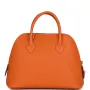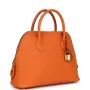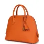 This 1923 Bolide is in Orange epsom leather with gold hardware and has tonal stitching, a top zipper closure, double rolled handles and removable shoulder strap.