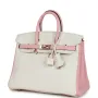 2025 Best Hermes Birkin 25 White and Rose Sakura Clemence Rose Gold Hardware online shop. Buy cheap Hermes Birkin 25 Bags worldwide shipping.