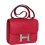This Constance 1-24 is in Rose Extreme Matte Alligator Mississippiensis leather with palladium hardware and features tonal stitching, a "H" snap lock closure, a back exterior pocket, and an adjustable shoulder strap.