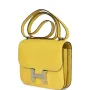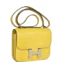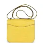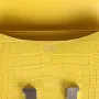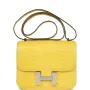 This Hermès Constance 1-18 is in Mimosa Matte Alligator Mississippiensis leather with Palladium Hardware, tonal stitching, metal "H" snap closure, and an adjustable strap.