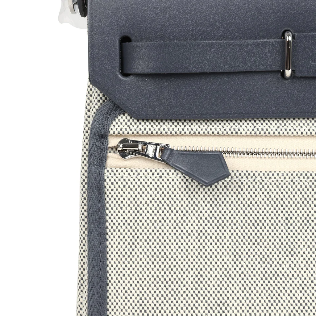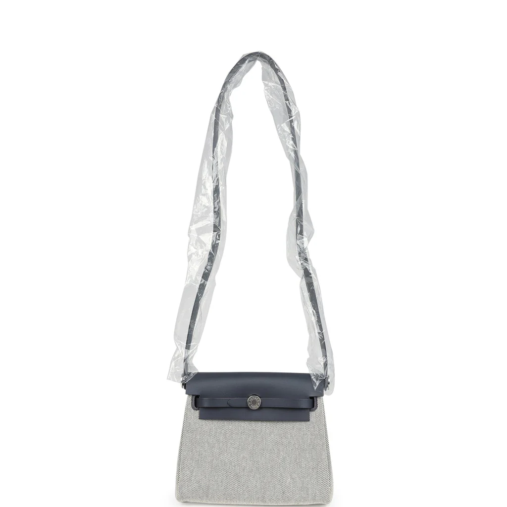 Hermes Herbag Zip 20 Mini Ecru and Ardoise Toile H Canvas and Ardoise Vache Hunter Palladium Hardware