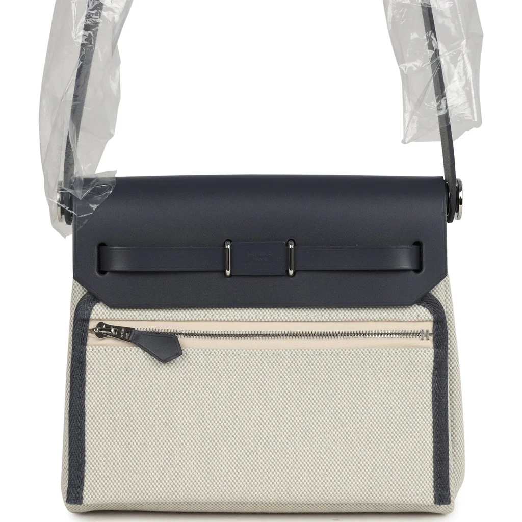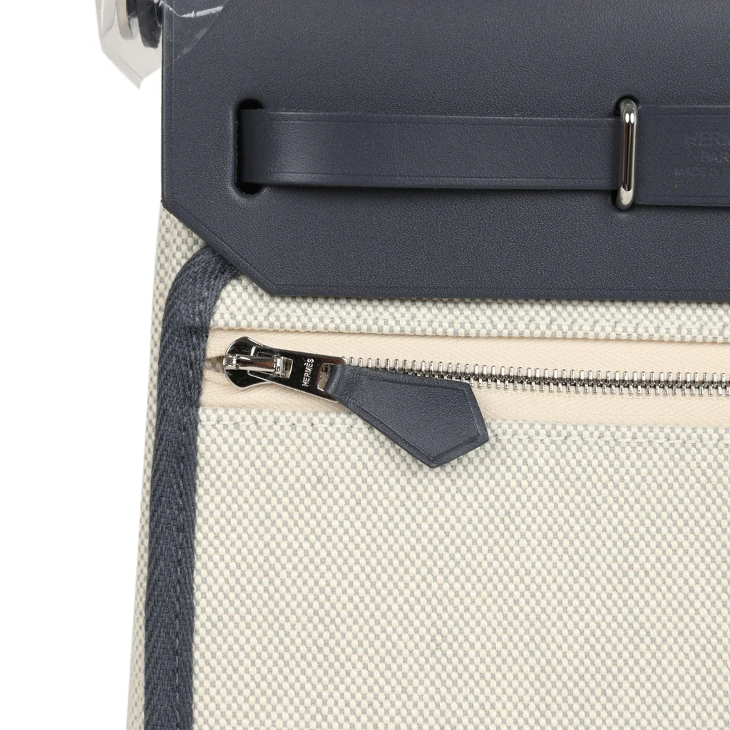 Hermes Herbag Zip 20 Mini Ecru and Bleu Glacier Toile H Canvas and Ardoise Vache Hunter Palladium Hardware