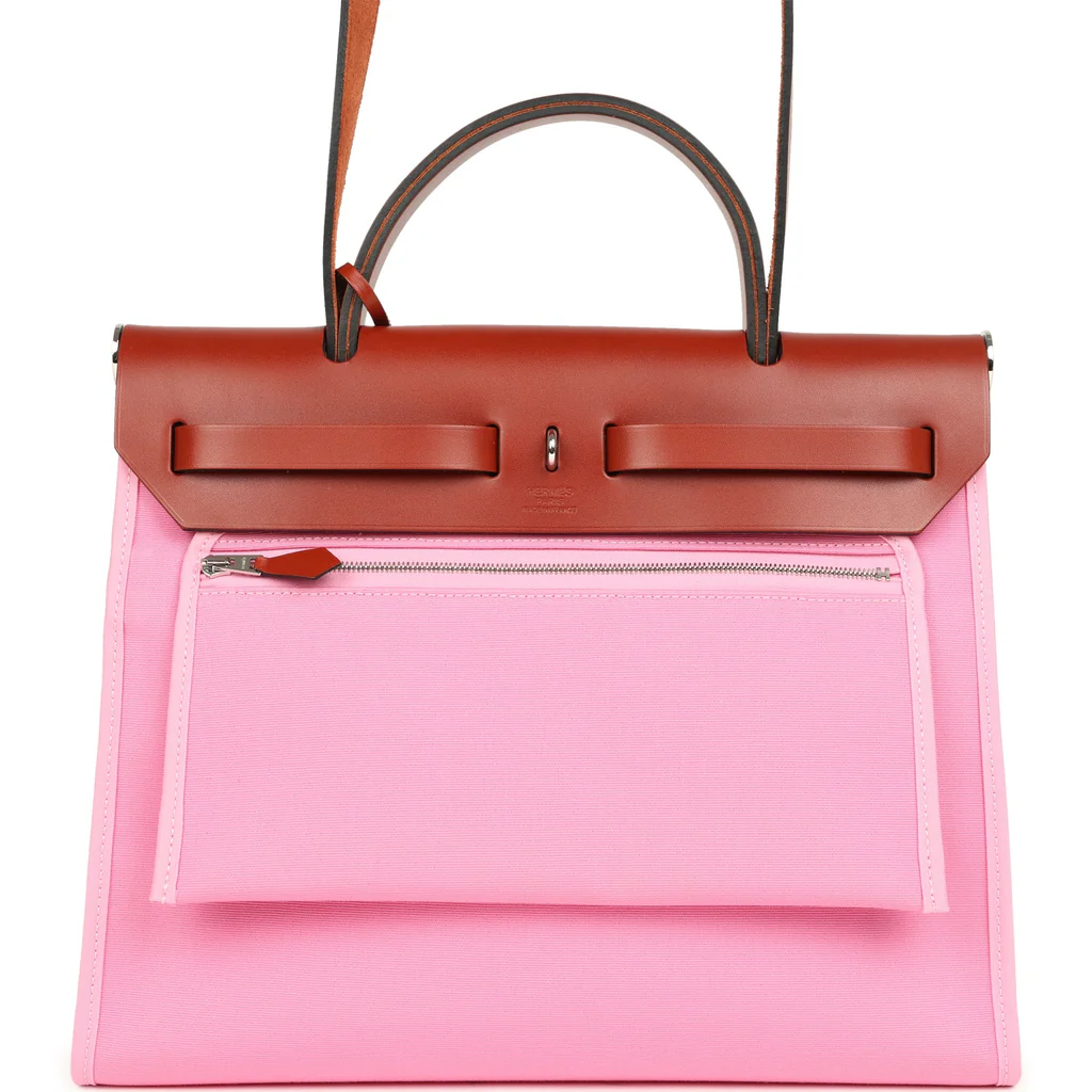 Hermes Herbag Zip PM 31 Bubblegum Pink Officier Canvas and Cuivre Hunter Palladium Hardware