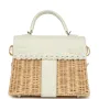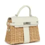 This rare Mini Picnic Kelly Bag is in White swift leather and Osier wicker with Palladium plated hardware and has tonal stitching, two straps with toggle closure, single rolled handle and shoulder/crossbody strap.